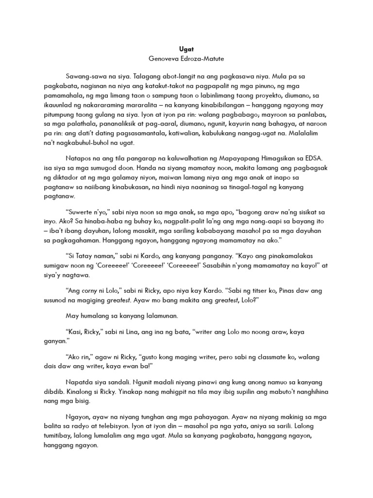 “Diyos ko! Nasa dugo ko rin pala! Gumapang na rin pala ang ugat sa akin – lahat na