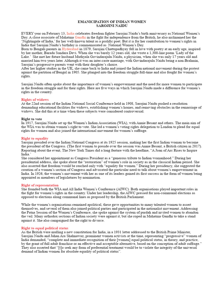 ‘Nightingale of India,’ for her well-known talent as a prolific poet. But it is for her contribution to women’s rights in