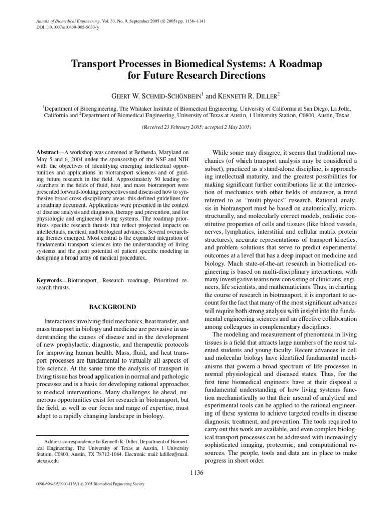 the course of research in biotransport, it is important to ac-
