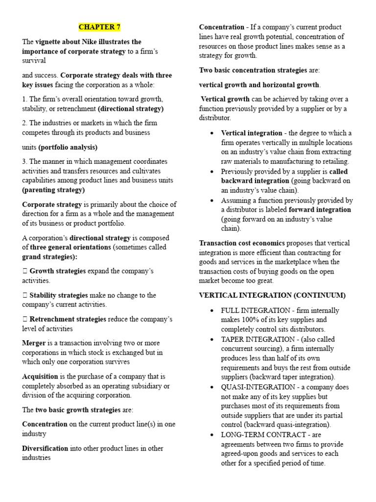 key issues facing the corporation as a whole: vertical growth and horizontal growth.