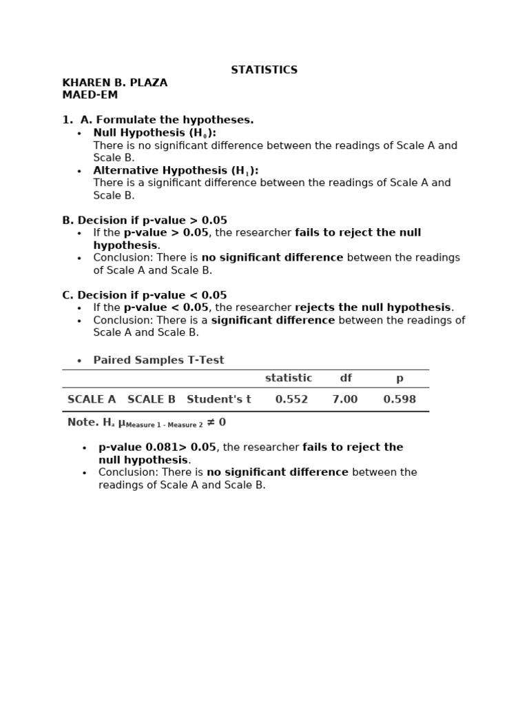 SCALE A SCALE B Student's t 0.552 7.00 0.598