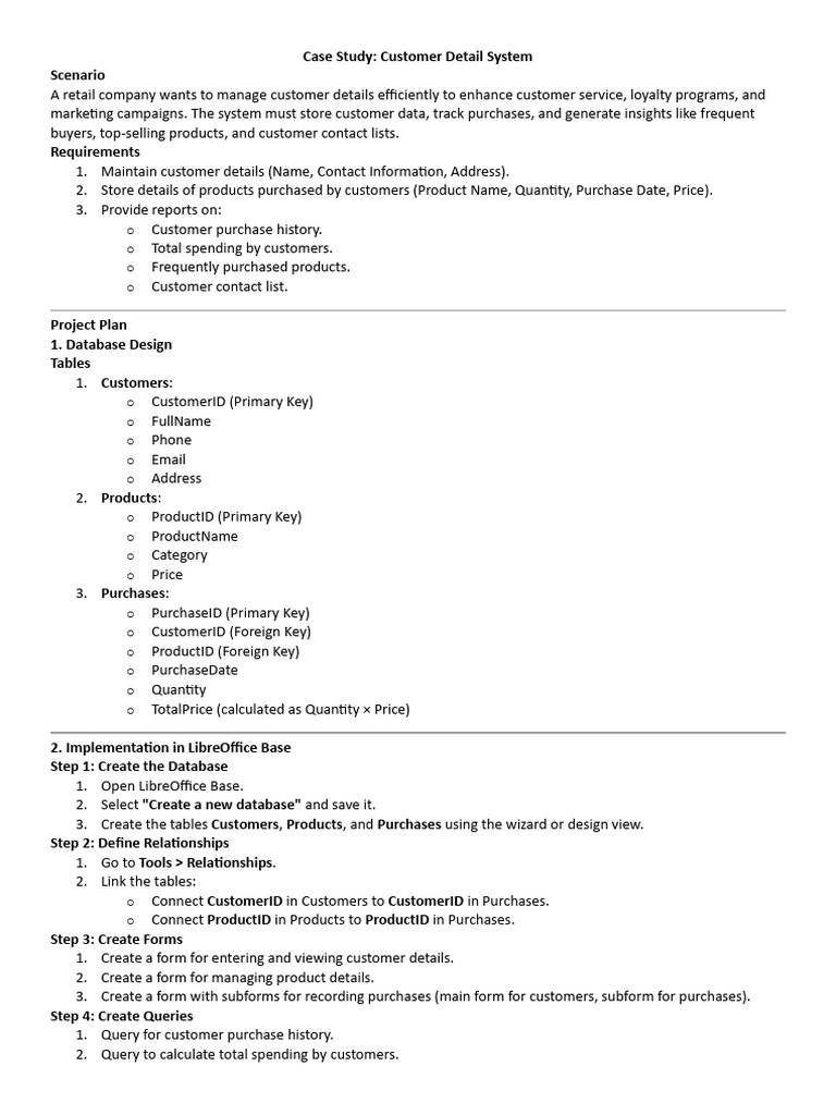 marketing campaigns. The system must store customer data, track purchases, and generate insights like frequent