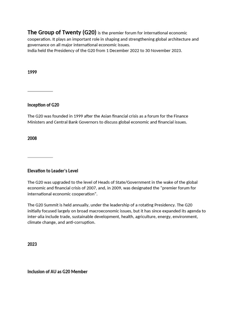 international standing. Being part of the G20 forum provides India with a level of recognition