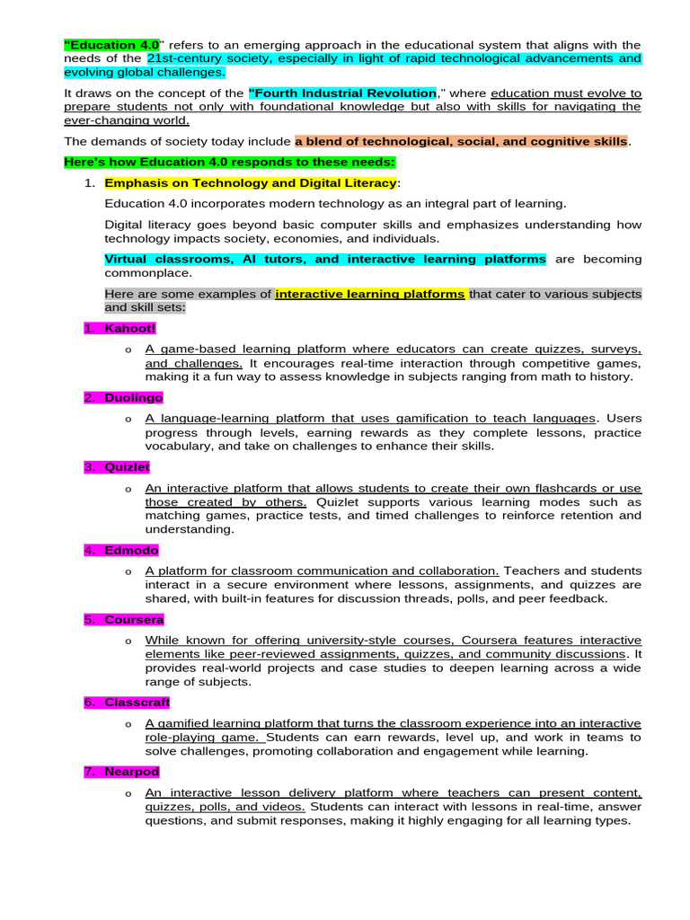 Education 4.0 incorporates modern technology as an integral part of learning.