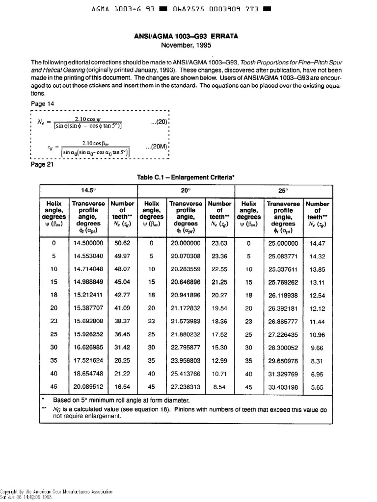 ‘The following editorial corrections should be made to ANSVAGMA 1003-G93, Tooth Proportions for FinePitch Spur