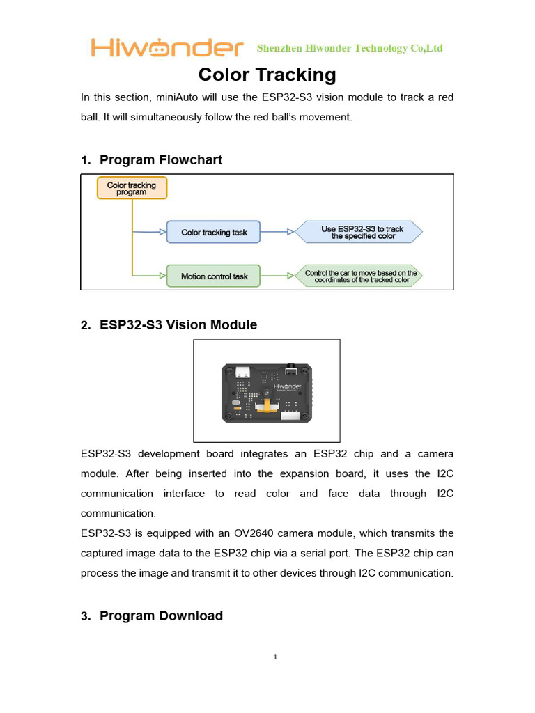 firmware located in “02 Program File/01 ESP32-S3 Color Tracking
