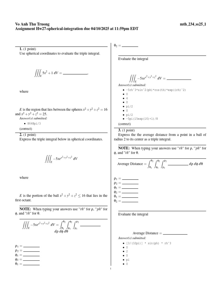 Assignment Hw27-spherical-integration due 04/10/2025 at 11:59pm EDT