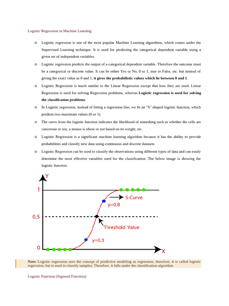 o Logistic regression is one of the most popular Machine Learning algorithms, which comes under the