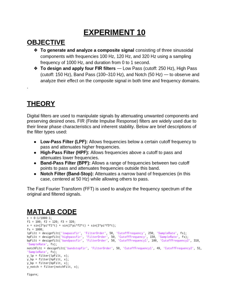 suppressed (e.g., 50 Hz power line interference). This lab validates the theoretical