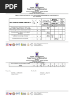 TABLE OF SPECIFICATION