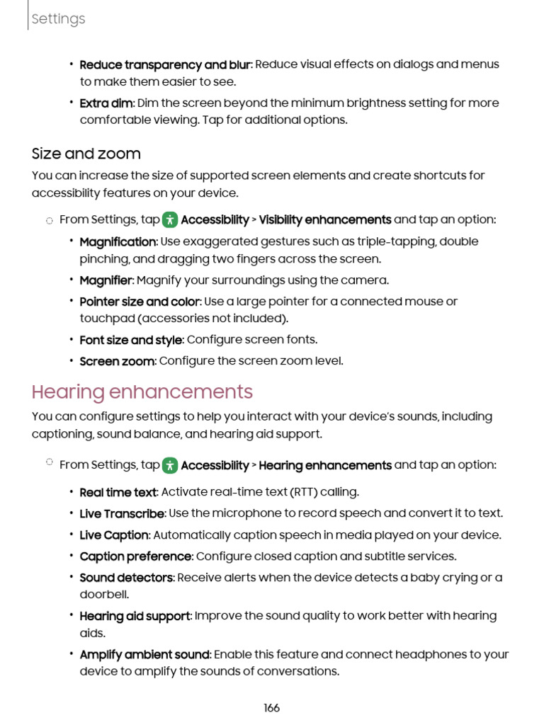 accessibility features on your device.