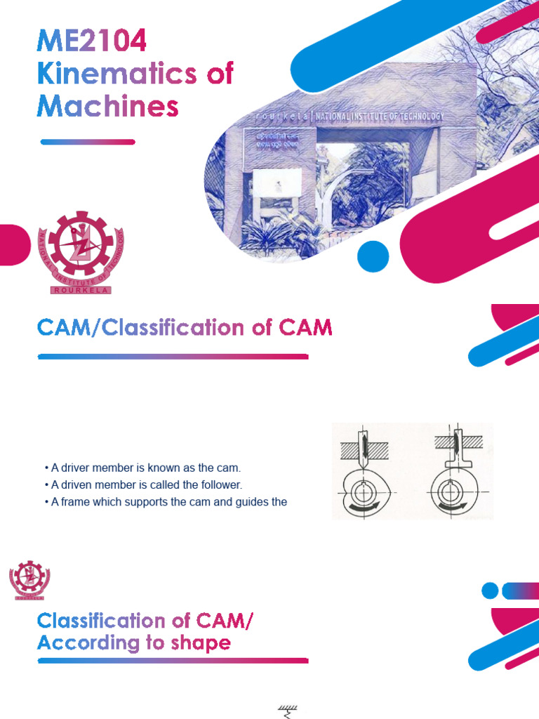 A cam is a mechanical member used to impart desired motion to a follower by direct