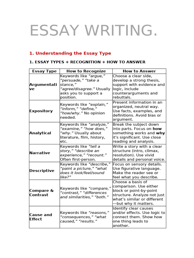1. ESSAY TYPES + RECOGNITION + HOW TO ANSWER