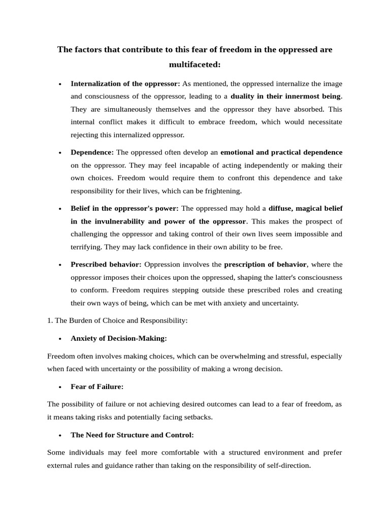 The factors that contribute to this fear of freedom in the oppressed are