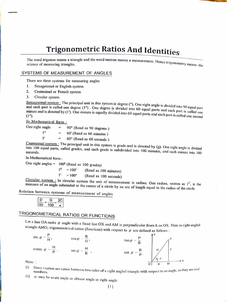 c -rn 10s are ratios helwccn two sidi.:.s of a right angled trian I ••y •,re ren I