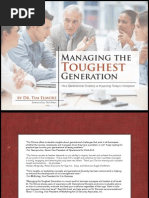 3 For baby boomers work is everything whereas generation X and Y seek a balance in work and life, as they believe that family is as important as work. Generation Y for this reason focuses on flexible hours, which for baby boomers is very difficult to understand. A typical baby boomer would arrive at office sharp at 9 and will work as much as he could, whereas generation Y would want to work on time that suits them and time that doesnt affect their personal life. This becomes a challenge for organization in many ways. Firstly since baby boomers are their bosses and are in top level management so it becomes difficult for them to understand the concept of flexible work hour concept for them coming to office at 9 and leaving at 5 or after that is the work hours. Communication Gap: Communication gap arises because people of different generations are not willing to listen to each other. Also baby boomers believing that they are more experienced dont like to listen to generation X, Y whereas generation X, Y believing that baby boomers will not understand the new ideas doesnt tell them. Technology gap: Baby boomers are not technology literate whereas generation Y is grown in a time of rapid technology development, using computers, and mobiles is not at all an issue for them. They didnt have to learn it. This creates a clash between generations because baby boomer is not comfortable with soft copy and texting whereas generation Y totally rely on it. Also baby boomers dont want to learn new technology and this makes it a little more difficult for organization. Attitude towards authority Figure: Generation X and Y believe that respect is earned. Baby boomers on the other hand believe in chain of command for them the decision of the boss is the ultimate decision, they respect authority. For baby boomers asking questions from authority or being open to them is considered disrespectful, whereas generation X, Y are dont like it if their ideas and thoughts are rejected just because authority figure says it cant happen. Even when generation X, Y is in authority positions they dont force decisions on their employees. Respect: Respect has different meaning for these generations. A baby boomer feels respected if his decisions are obeyed, nobody questions him. Generation X, Y want their opinions