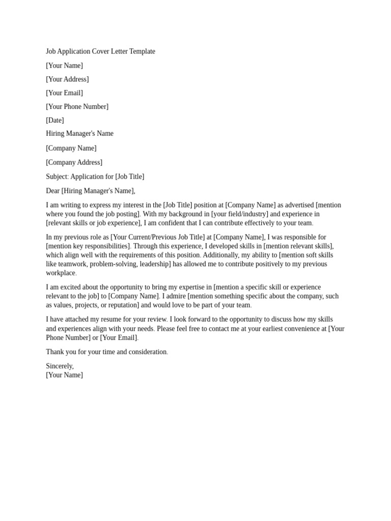 I am writing to express my interest in the [Job Title] position at [Company Name] as advertised [mention