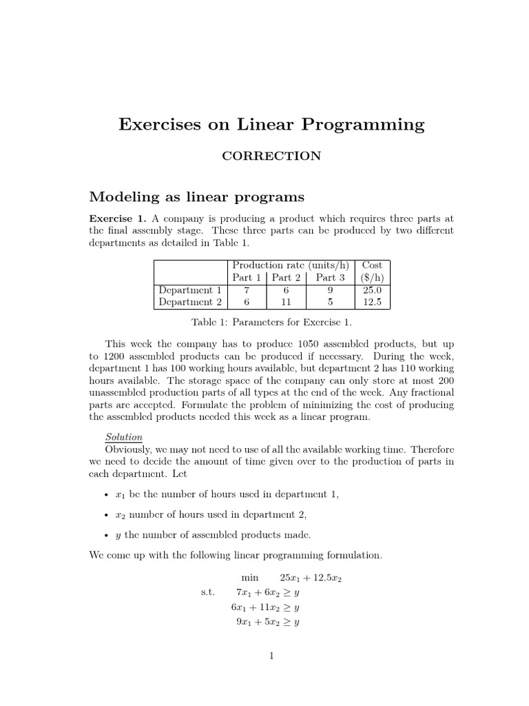 Exercise 1. A company is producing a product which requires three parts at
