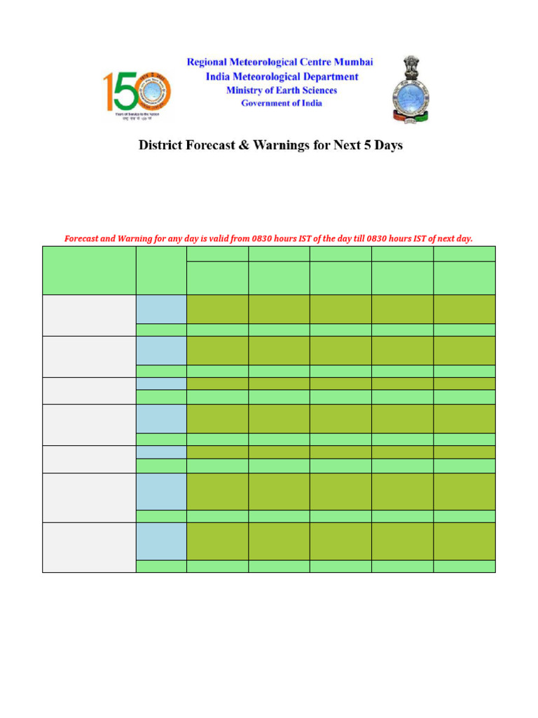 Forecast and Warning for any day is valid from 0830 hours IST of the day till 0830 hours IST of next day.