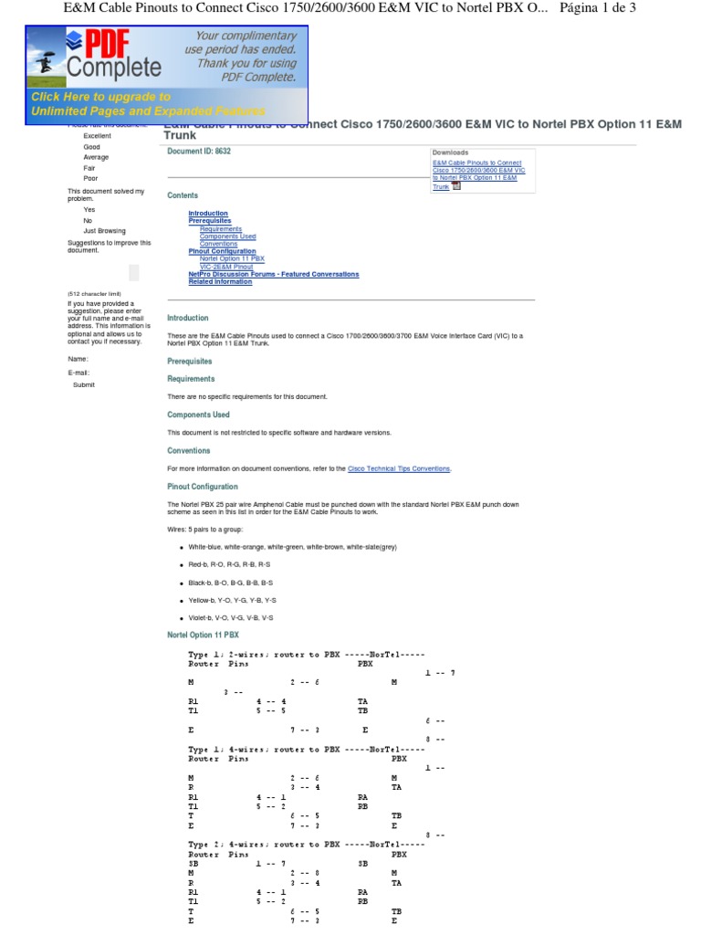 E&M Cable Pinouts to Connect Cisco 1750/2600/3600 E&M VIC to Nortel PBX O... Pgina 2 de 3
