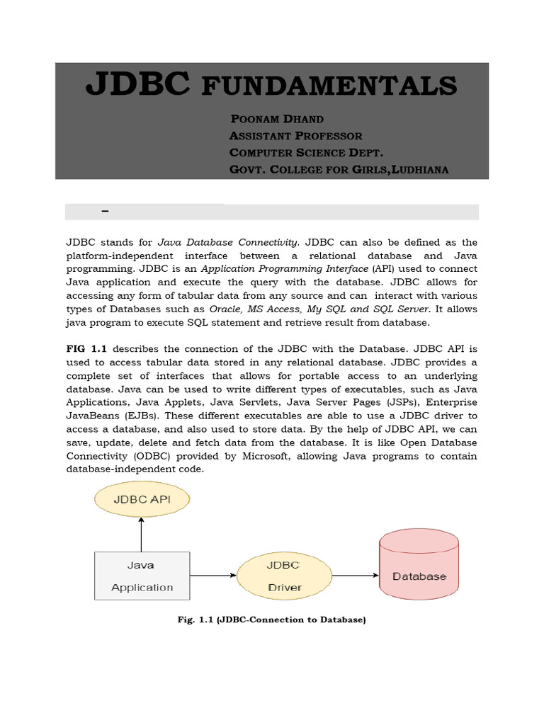 FIG 1.1 describes the connection of the JDBC with the Database. JDBC API is