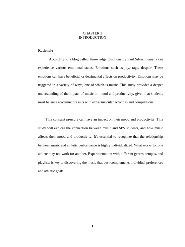 entitled, “Exploring The Impact of Music on Mood and Productivity Among SPS