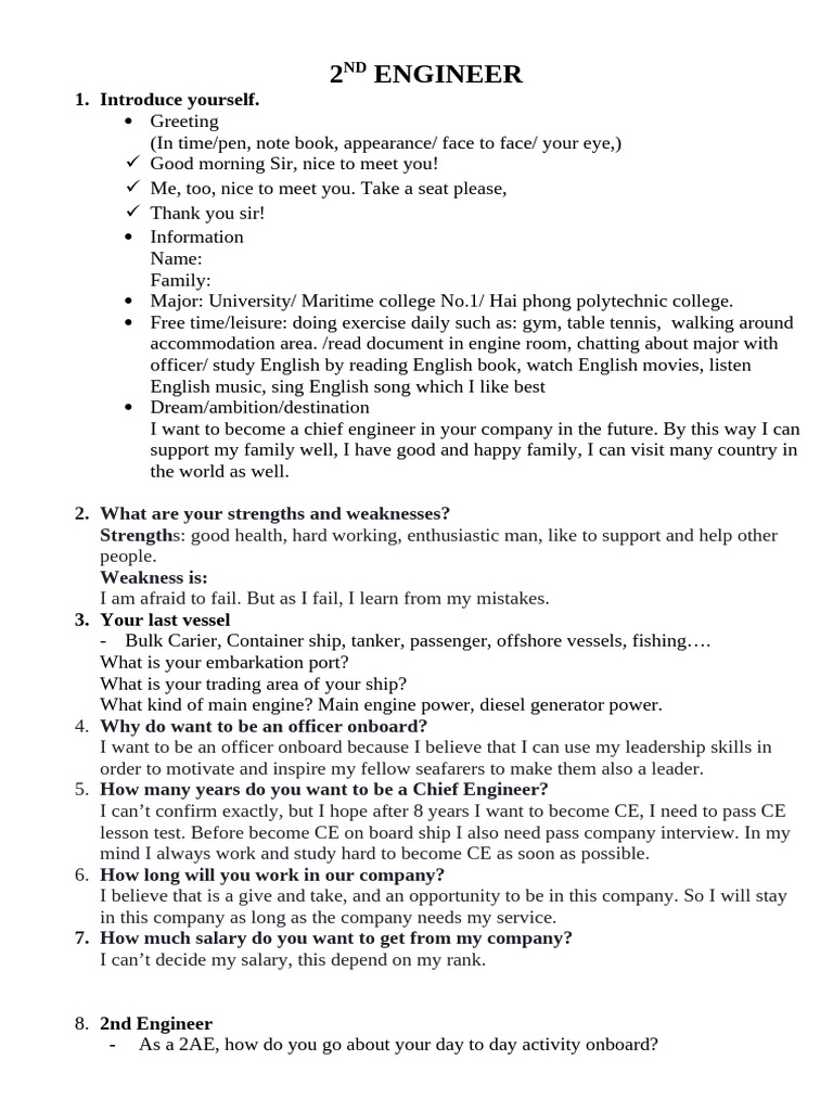lesson test. Before become CE on board ship I also need pass company interview. In my