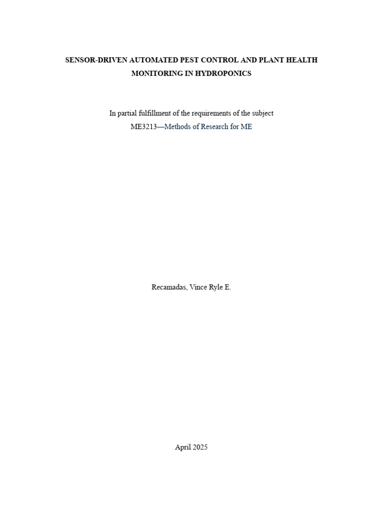 hydroponics using sensors”. This research focuses on the application of sensors for pest control