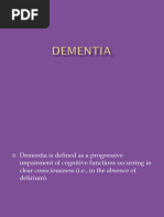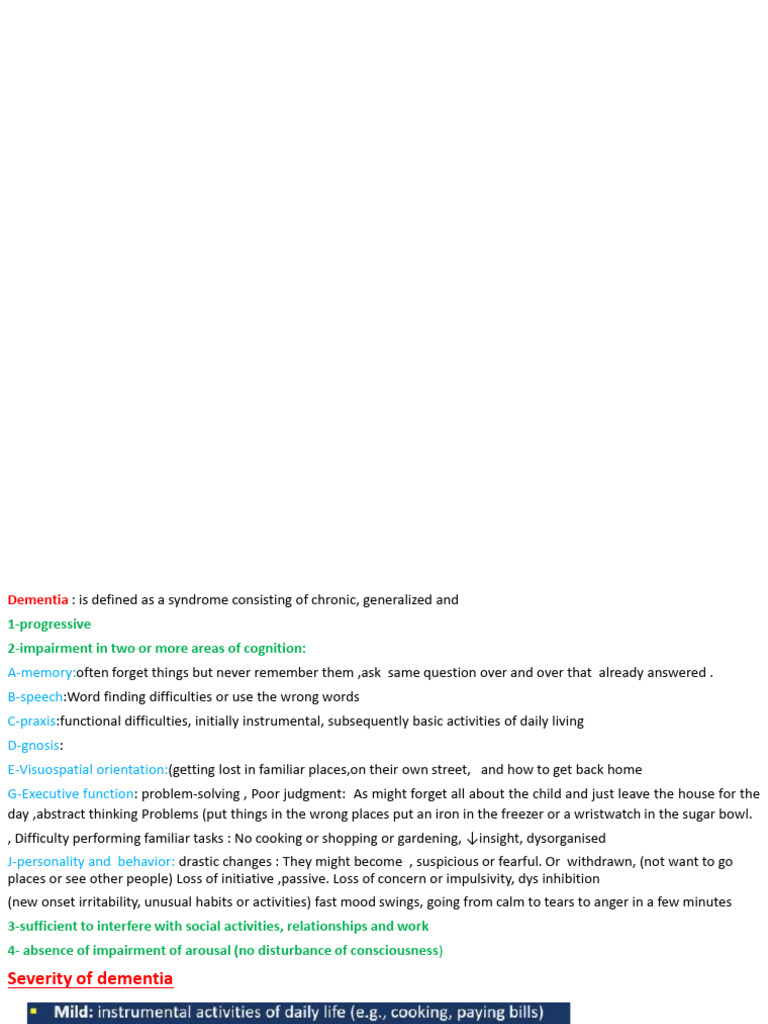 Dementia : is defined as a syndrome consisting of chronic, generalized and