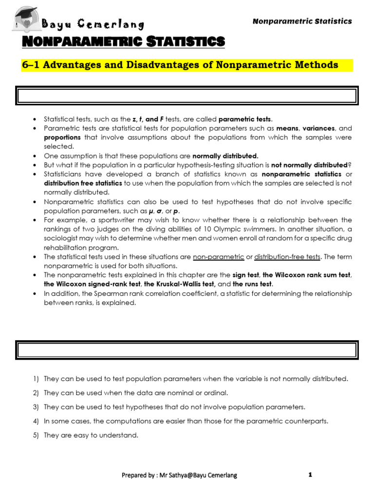 6–1 Advantages and Disadvantages of Nonparametric Methods