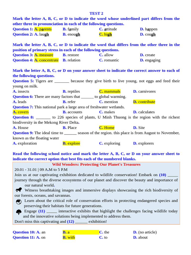 Mark the letter A, B, C, or D on your answer sheet to indicate the correct answer to each of