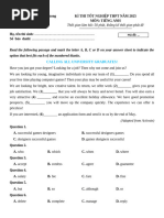 Mark the letter A, B, C, or D on your answer sheet to indicate the correct option that best fits