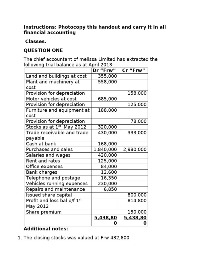4. Wages owing at 31st March 2012 amounted to Frw. 9,500 but this