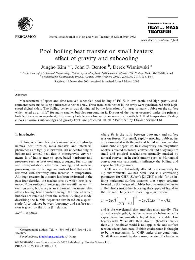 temperature sensor. Boiling behavior under a wide range scales and gravity levels, but could not account for the