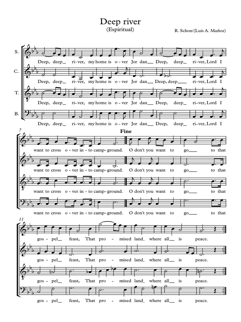 Deep, deep ri- ver, my home is o - ver Jor dan Deep, deep ri - ver, Lord I
