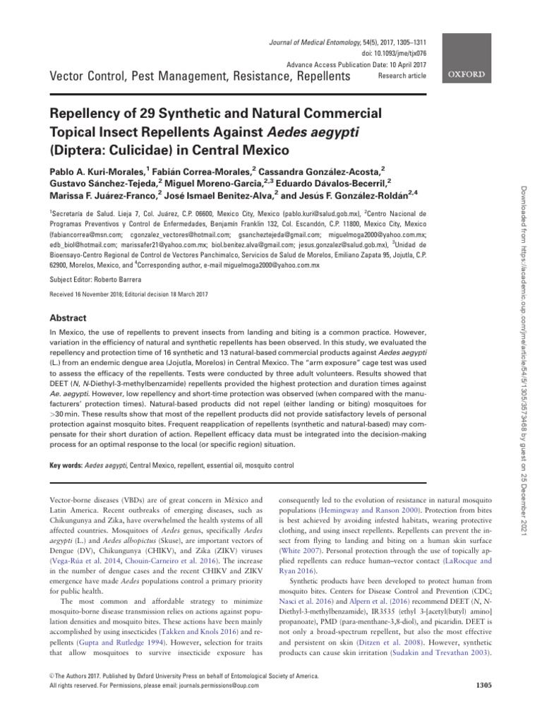 repellents indicates they have effects on each mosquito population. 360 5300 N, 99 100 4900 W) at Morelos State, in Central Mexico. It