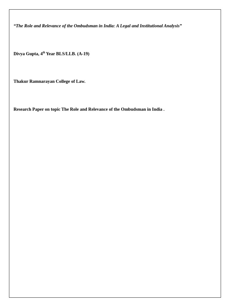 Research Paper on topic The Role and Relevance of the Ombudsman in India .