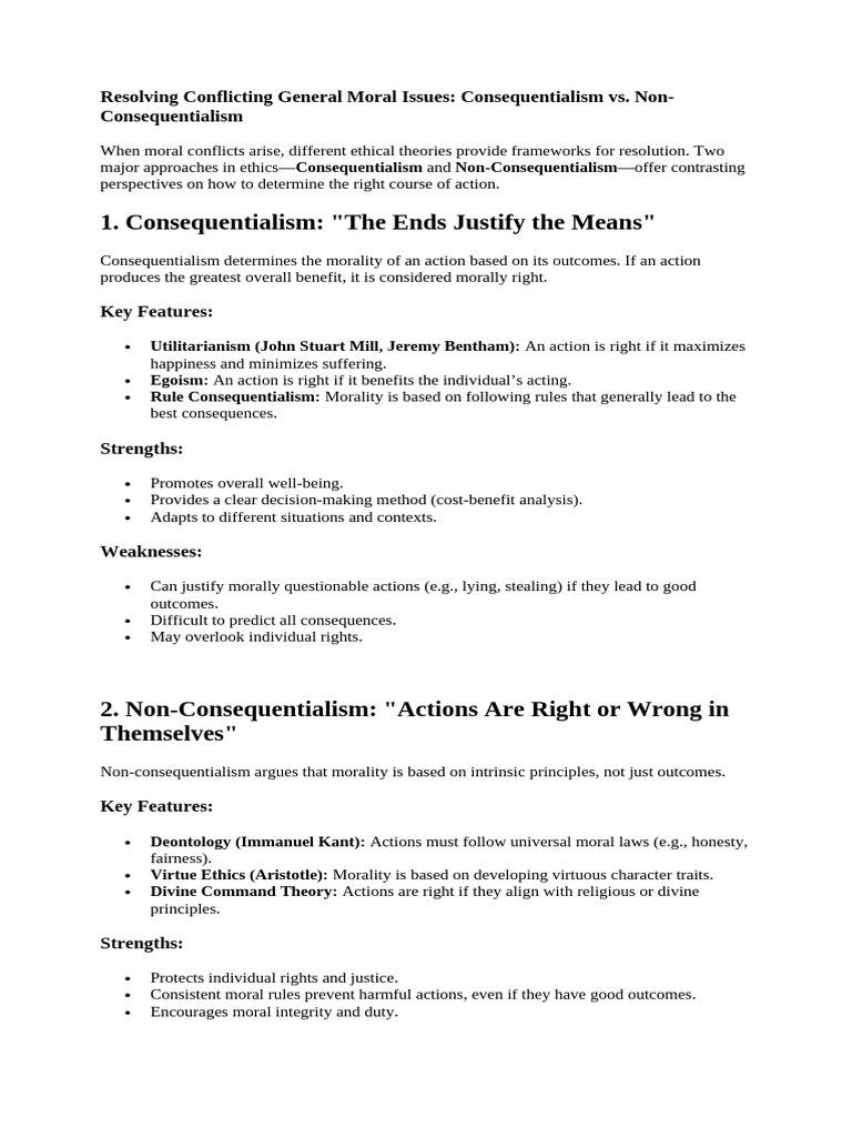 When moral conflicts arise, different ethical theories provide frameworks for resolution. Two