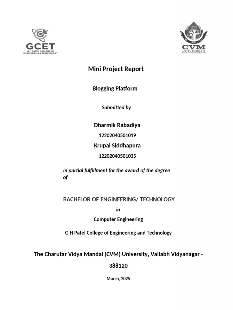Technology at The Charutar Vidya Mandal (CVM) University, Vallabh Vidyanagar during the