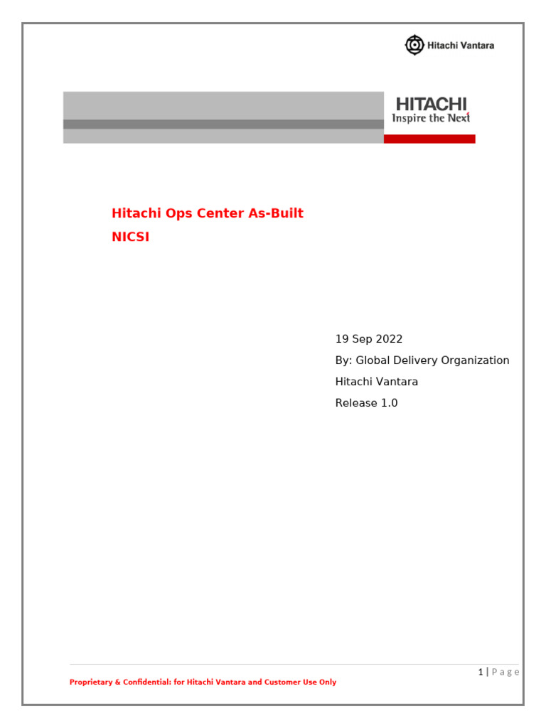 Proprietary & Confidential: for Hitachi Vantara and Customer Use Only