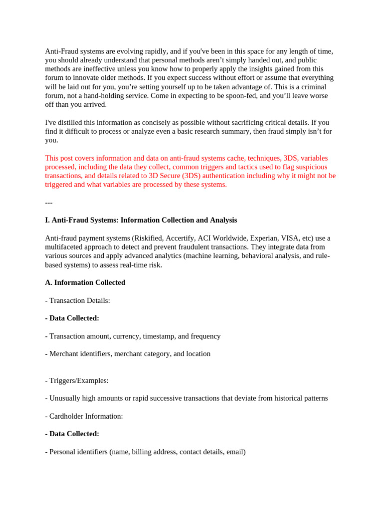 This post covers information and data on anti-fraud systems cache, techniques, 3DS, variables
