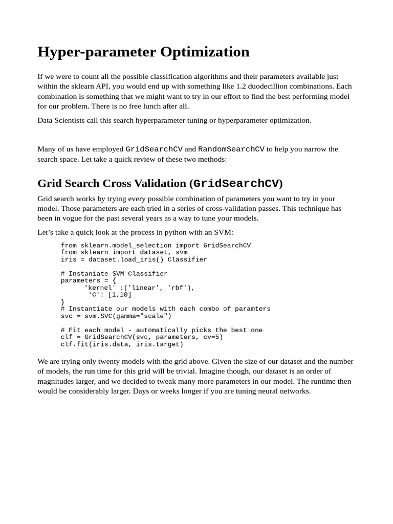 Hyper-parameter Optimization