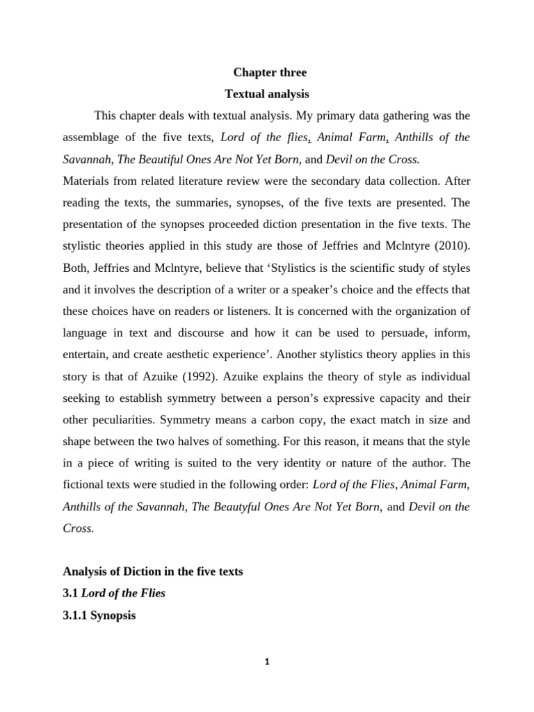 assemblage of the five texts, Lord of the flies, Animal Farm, Anthills of the