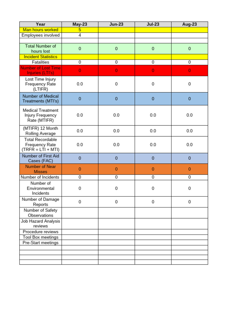 Number of Near Misses 0 0 0 0 0 0 0 0