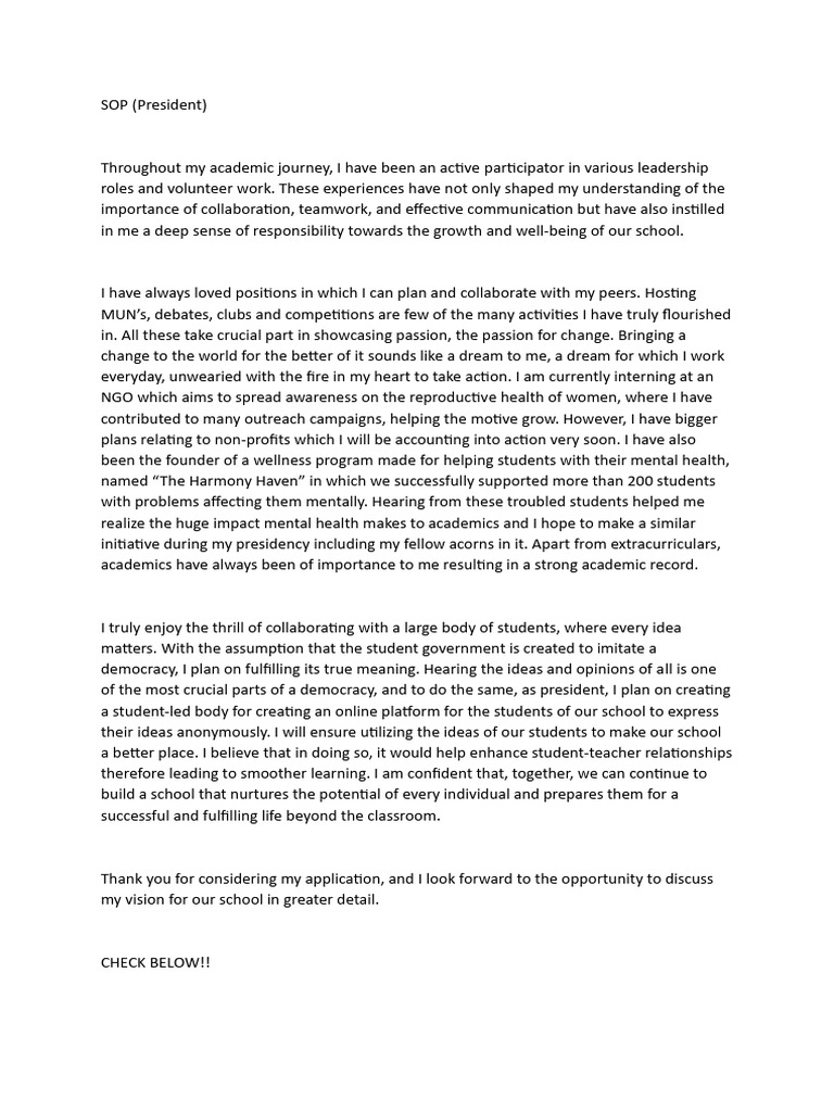 initiative during my presidency including my fellow acorns in it. Apart from extracurriculars,