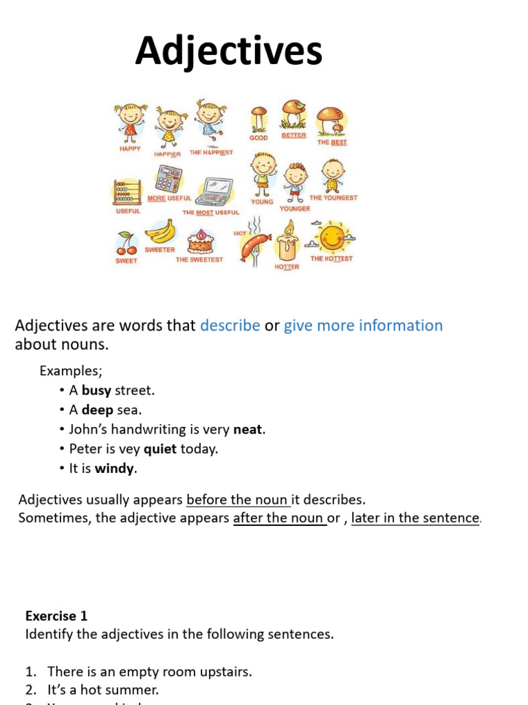 Adjectives are words that describe or give more information