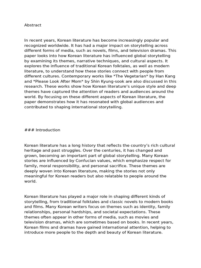 paper looks into how Korean literature has influenced global storytelling