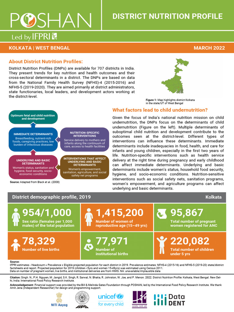 Citation: Singh. N., P.H. Nguyen, M. Jangid, S.K. Singh, R. Sarwal, N. Bhatia, R. Johnston, W. Joe, and P. Menon. 2022. District Nutrition Profile: Kolkata, West Bengal. New Del-