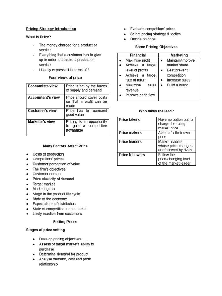 Economists view Price is set by the forces ● Maximise sales ● Build a brand