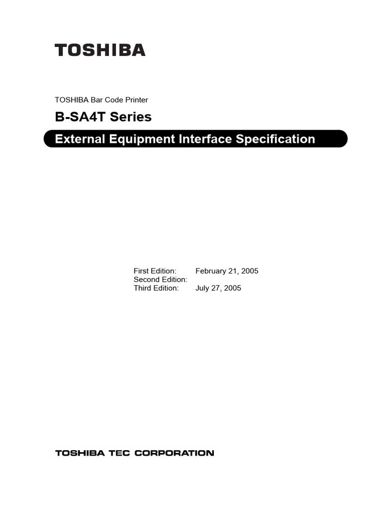 Toshiba B-SA4T Printer Interface Specs